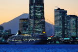 日没時、客船・飛鳥の出航時にあわせてみなとみらい、富士山を撮りました。